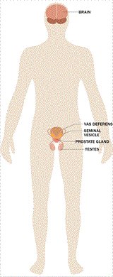 Stres způsobuje. že tělo uvolňuje hormon kortizol, který produkují nadledvinky. Kortizol je důležitý pro regulaci krevního tlaku a normální fungování několika tělesných systémů, a to včetně kardiovaskulárního, oběhového a také mužské reprodukce. Nadměrné množství kortizolu může ovlivnit biochemické fungování mužského reprodukčního systému.