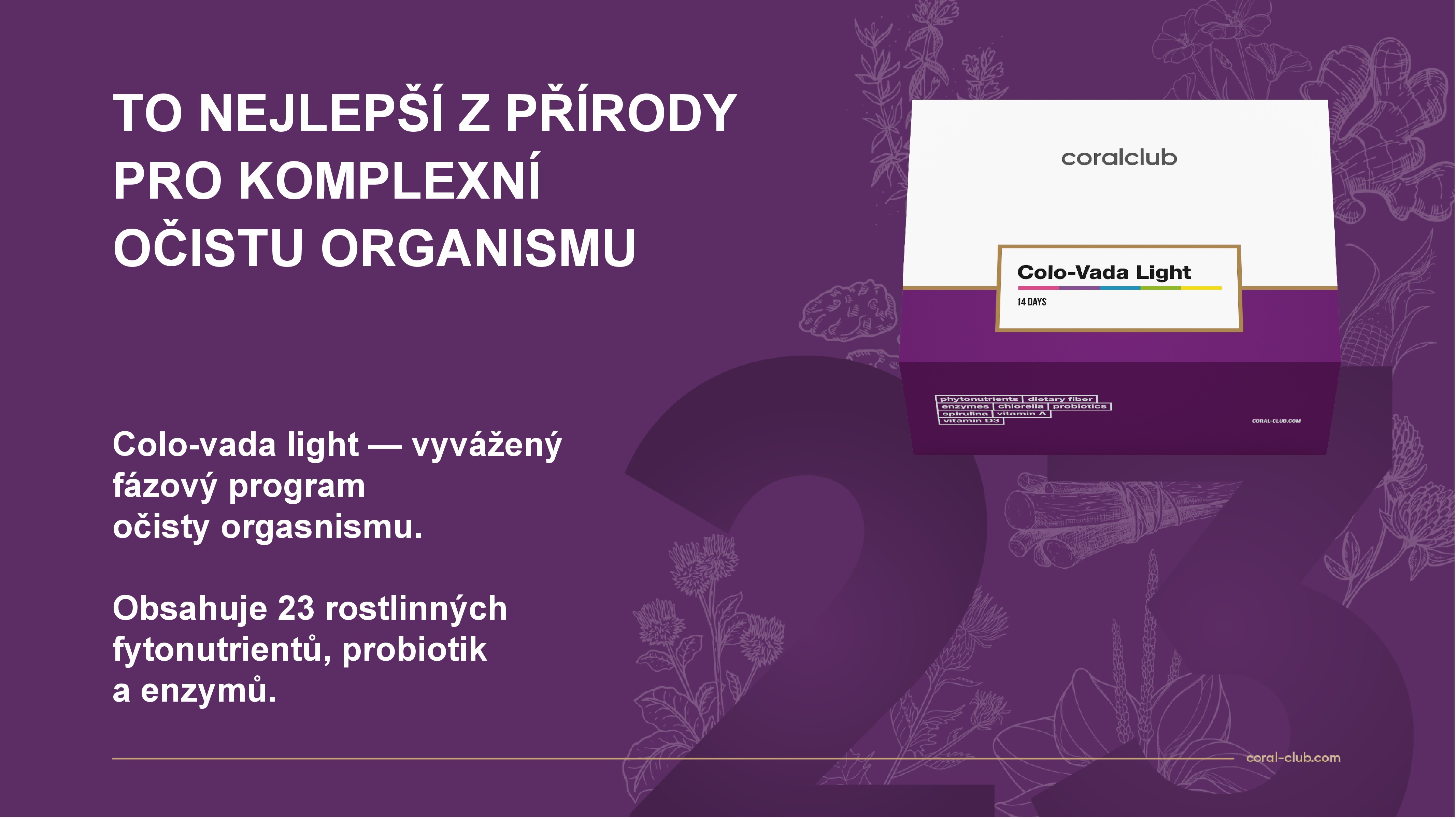 Colo Vada light pomáhá vytvořit zdravé prostředí v organismu, zvyšuje se celková obranyschopnost organismu, dochází k posílení celého imunitního systému, k celkové regeneraci a omládnutí organismu.