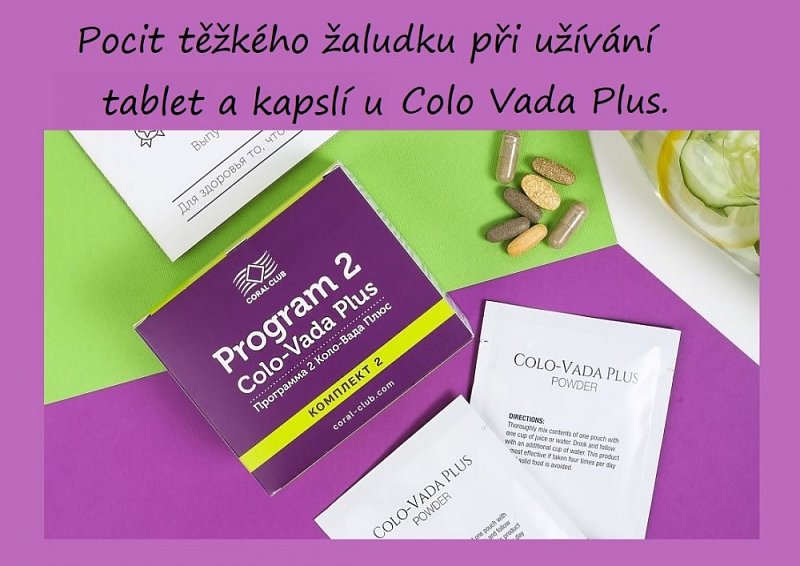 Užívání tablet a kapslí u Colo Vada Plus a pocit těžkého žaludku.