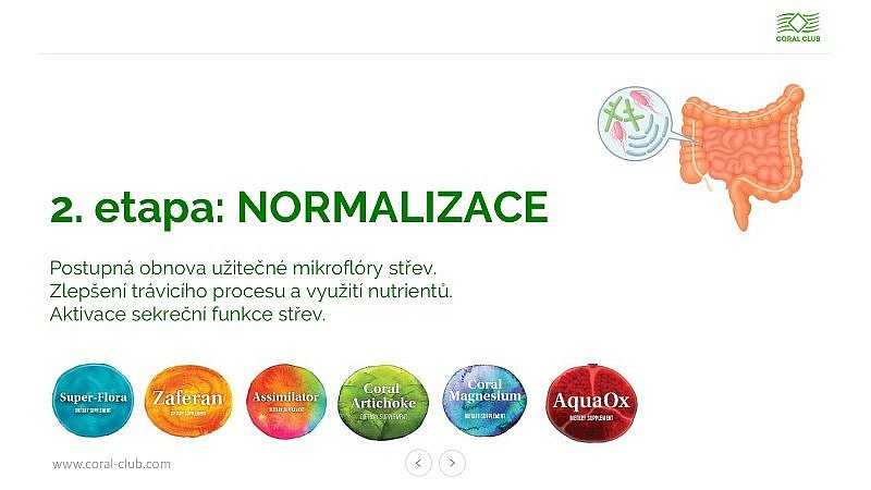 Proto jsou do 2. etapy zahrnuty produkty, které napomáhají obnově a následně i početnímu nárůstu užitečných bakterií, optimalizuje trávení a reguluje syntézu enzymů.